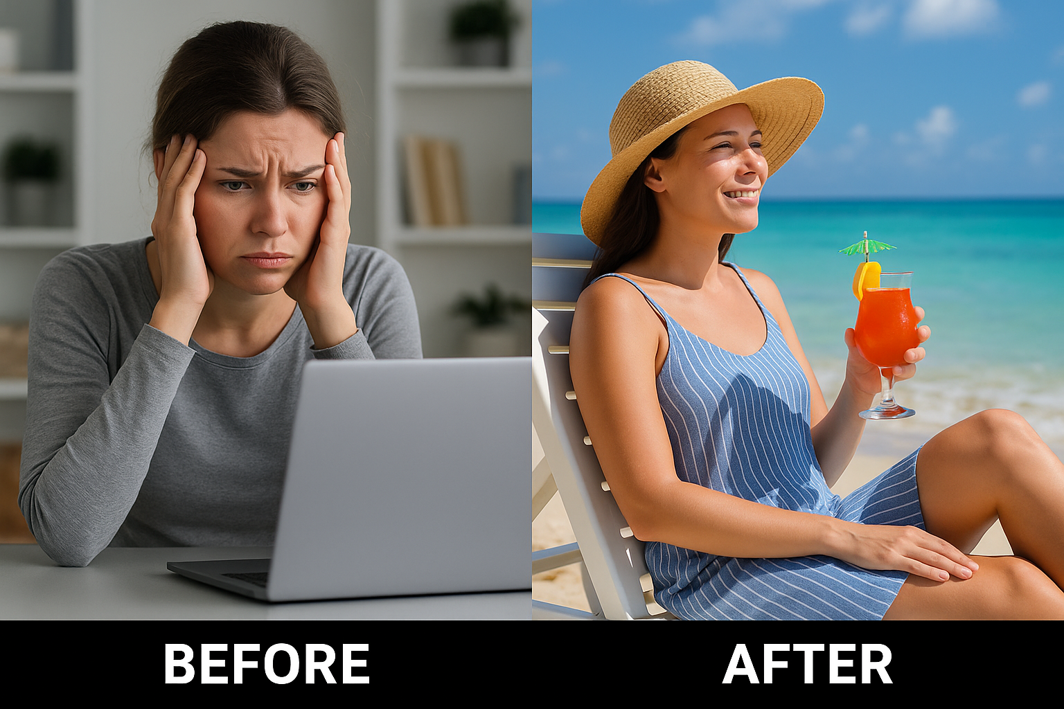 We set everything up for you. No tech headaches. No babysitting. Just a system that handles your emails, responds to texts, sends quotes and invoices — so you can finally focus on growing your business (or sipping wine in Santorini). Save money (this is way cheaper than outsourcing to a VA), and get your life back!
